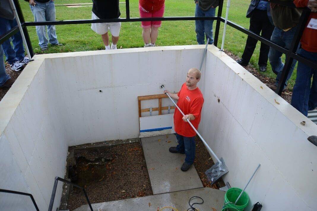 Take a look at the pictures below to see what our mock-basement set up looks like at our training facility: