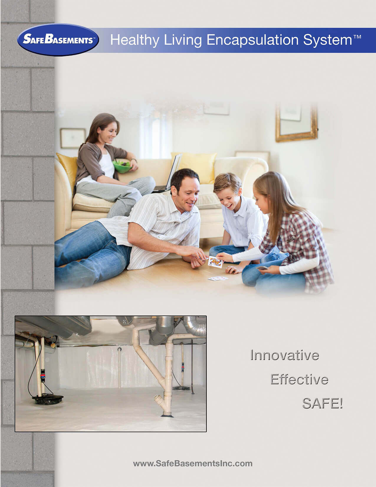 Using the Healthy Living Encapsulation System from SafeBasements™, we will install a white, durable, and strong vapor barrier that is attached to the surface of the wall and floor. The barrier permanently seals the area off keeping your crawl space safe, dry, and healthy.